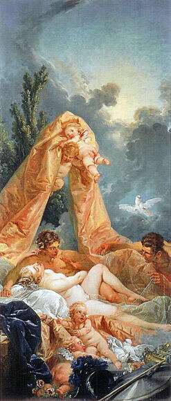 ビーナスは夫よりもイケメンのマルスと密会するようになりますが、そこに夫が乗り込んでくるのです。