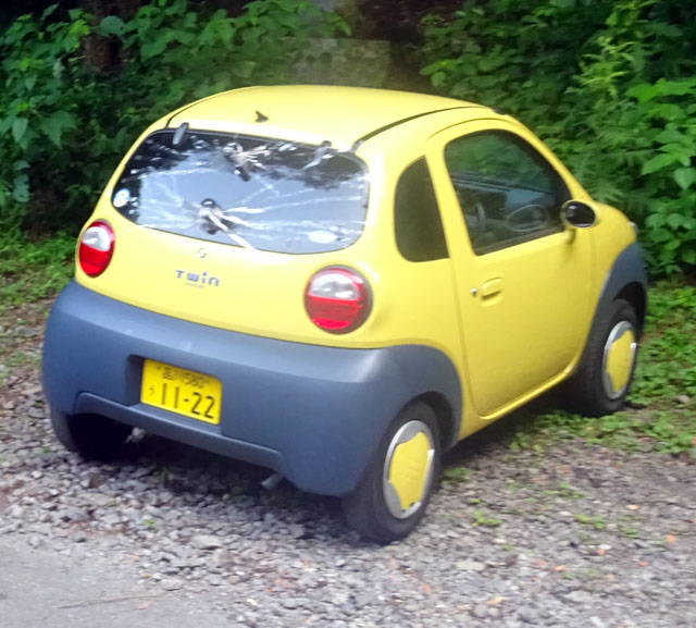 ミカンちゃんの後部ガラスにはカメラが二台取り付けています。