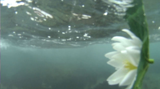 ふと水面近くに目をやると蓮が浮かび、右の方向に回っています。