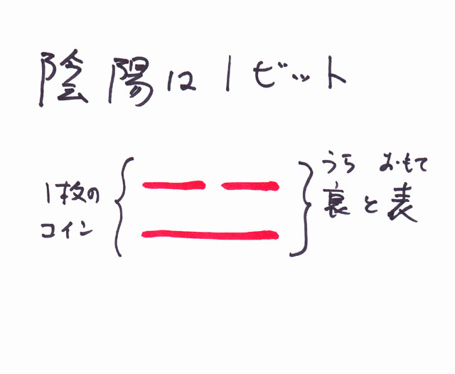 陰陽は一枚のコインで表すことができるので、たった1ビットです。