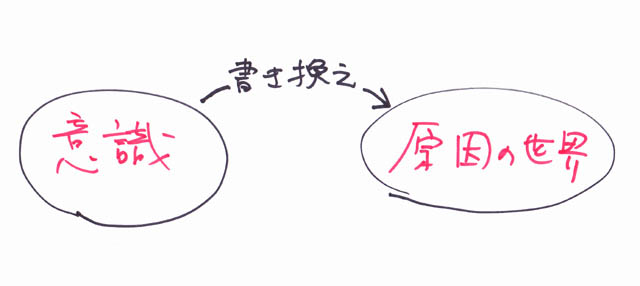 原因の世界に対して、意識からの書き換えです。